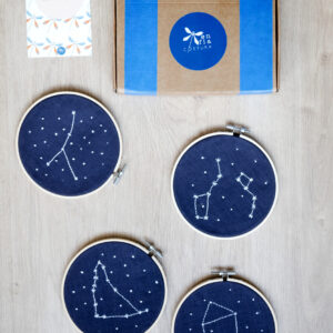 Incluyen materiales, herramientas, tutoriales, videos y muy buen rollo, preparados con mimo en nuestro taller de Madrid, donde los diseñamos, testamos, estampamos y montamos y te lo enviamos a casa en un periquete.